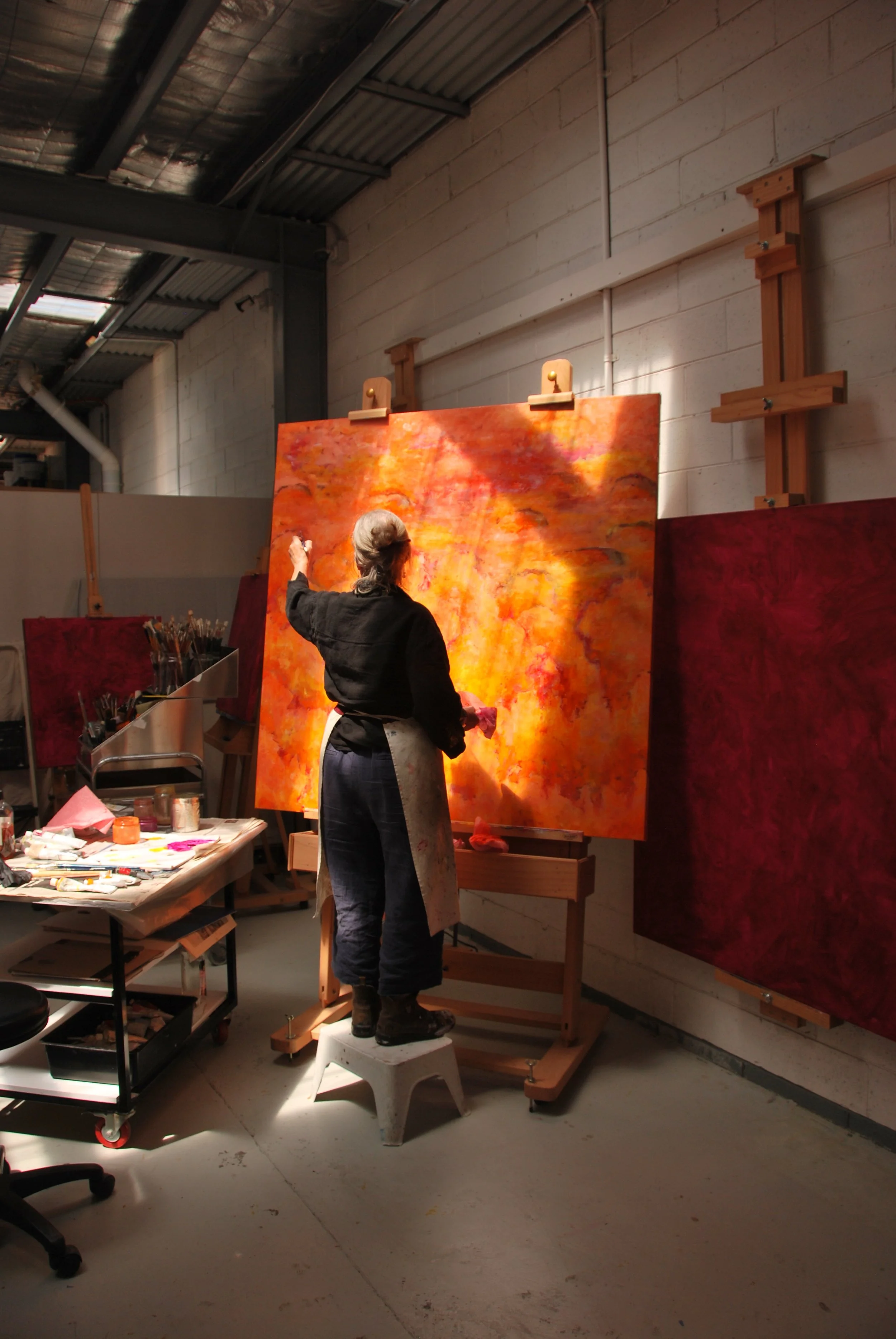 The vivid saturation of these works shout out for attention, raising an urgent call to action for greater compassion for the land which provides us with each and every breath. The saturated veil also expresses our shared existence and the challenges of unsustainable rising temperature, air pollution, devastating bushfires, erosion of fertile soil, salinity levels, biodiversity decay and water scarcity. The land is struggling to breathe. We feel the furnace. We fuel the furnace. We both breathe. If we don’t act, we both burn.